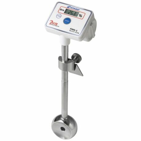 • Погружной рефрактометр PAN-1 — это сочетание ценовой доступности и функциональности проточного рефрактометра. Иногда возникают ситуации, когда необходимо контролировать концентрацию образца именно в ёмкостях, у которых нет выходов на трубы, где можно бы было установить проточный рефрактометр. Как правило, в таких ёмкостях проводятся процессы разбавления, размешивания или концентрирования. В этих случаях Вы просто устанавливаете в ёмкость погружной рефрактометр PAN-1. Он идеально подходит для контроля брожения (пиво, вино и пр.), для кондитерских предприятий, для предприятий, которые изготавливают свой продукт методом разбавления из концентрата (например, приготовления столового уксуса). На экране прибора отображаются значения % Brix и фактическая температура продукта. Длина погружного штатива составляет 30 см. Поверка рефрактометра PAN-1 осуществляется в аккредитованной лаборатории АНК и занимает от 1 до 5 дней.